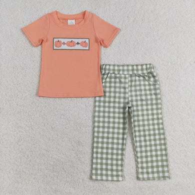 Baby Boys Orange Pumpkin Plaid Pants Clothing Sets