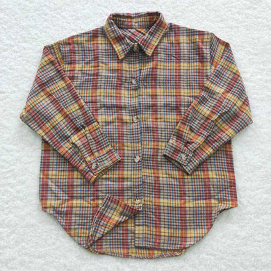 Baby Boys Orange Plaid Long Sleeve button ups Flannel shirts tops