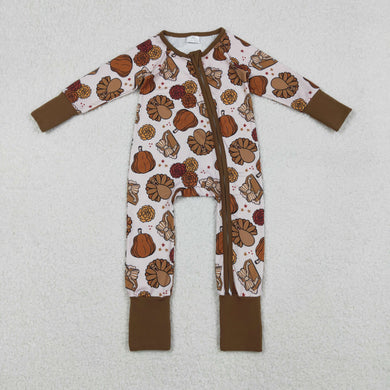 Baby Boys Pie Turkey Pumpkins Thanksgiving Zipper Footie Rompers