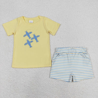 Baby Boys Planes Short Sleeve Tee Shirts Stripes Shorts Clothes Sets
