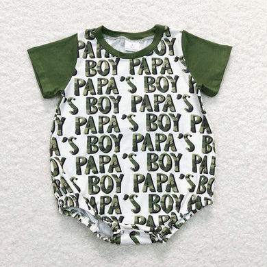 Baby Boys Papa's Boy Green Short Sleeve Rompers