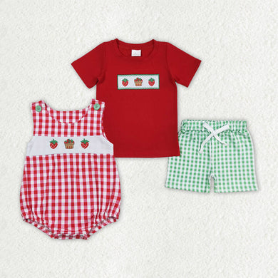 Baby Boys Red Strawberry Cake Sibling Brother Rompers Clothes Sets