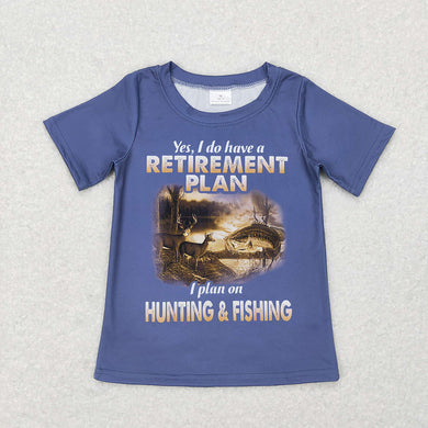 Baby Boys Retierment Plan Blue Hunting Fishing Short Sleeve Tee Shirts Tops