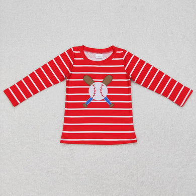 Baby Boys Red Stripes Baseball Long Sleeve Tee Shirts Tops