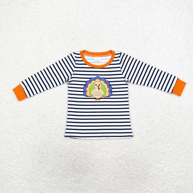 Baby Boys Stripes Thanksgiving Turkey Long Sleeve Tee Shirts Tops