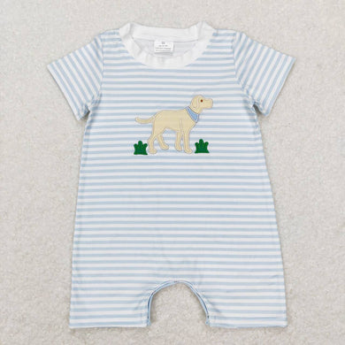Baby Boys Stripes Dog Short Sleeve Rompers