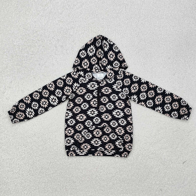 Baby Boys Western Black Aztec Hooded Long Sleeve Tops
