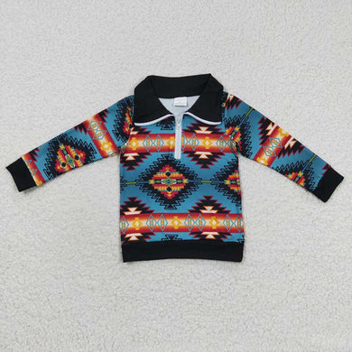 Baby Boys Western Blue Aztec Long Sleeve Pullover Tops