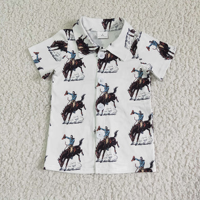 Baby Boys Western Blue Horse Short Sleeve Shirts Tops