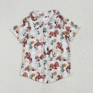 Baby Boys Western Cow Cactus Buttons Tee Shirts Tops