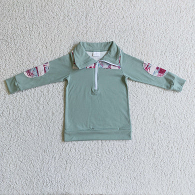 Baby Boys Western Cactus Cow Green Long Sleeve Tee Shirts Tops