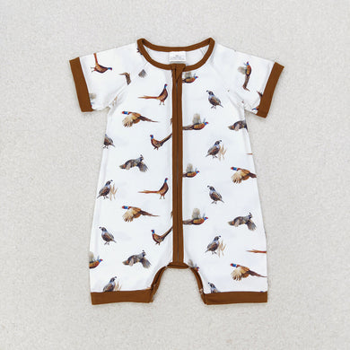Baby Boys White Wild Chicken Short Sleeve Zip Rompers