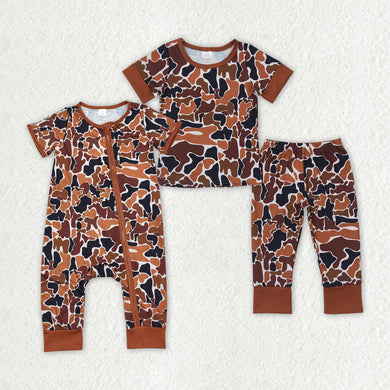 Baby BoysBrown Camo Sibling Rompers Pajamas Clothes Sets