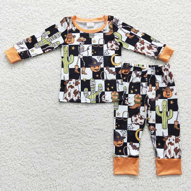 Baby Children Cow Skull Aztec Western Pajamas Clothes Sets