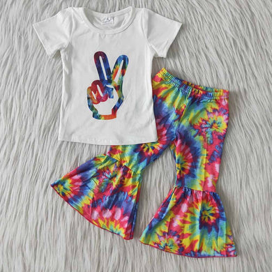 Baby girls love valentines short sleeve shirt bell bottom pants clothing sets