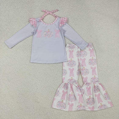 Baby Girls Long Sleeves Bows Pumpkins Top Bell Bottom Pants Fall Clothes Sets