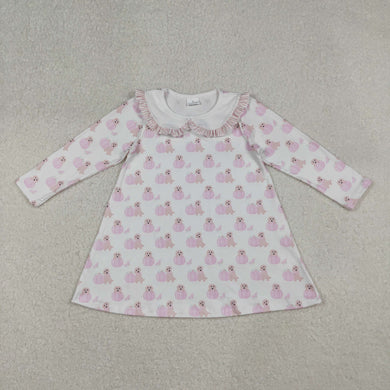 Baby Girls Pink Dog Pumpkins Fall Knee Length Dresses