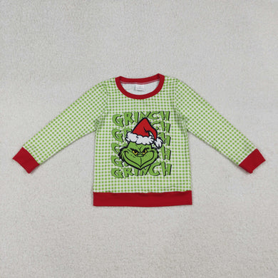 Baby Boys Green Face Plaid Christmas Tee Shirts Top