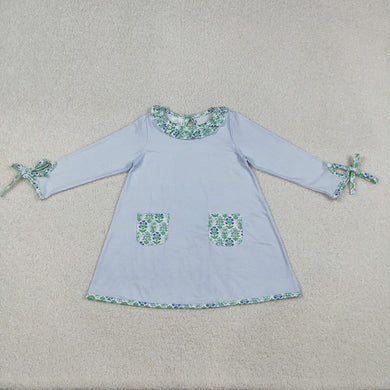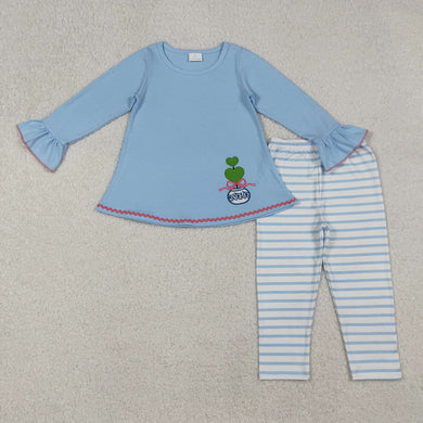 Embroidery Bows Plants Baby Girls Blue Tunic Stripe Legging Sets