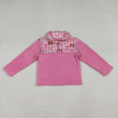 Baby Girls Pink Bows Plaid Quatrefoil Zipper Pullover Sherpa Tops