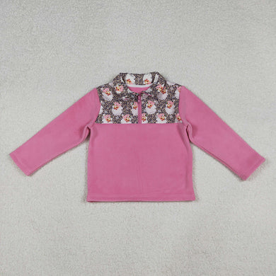 Baby Girls Santa Leopard Christmas Half Zipper Pullover Sherpa Tops
