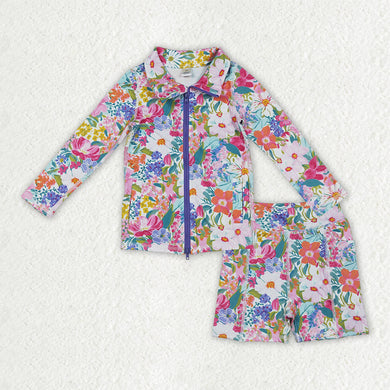 Baby Girls Pink Lavender Floral Zipper Pockets Jacket Shorts Yoga Active Clothes Set
