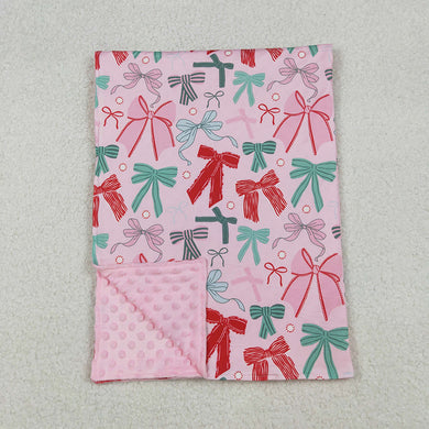 Baby Kids Girls Pink Green Bows Plaid Christmas Blankets
