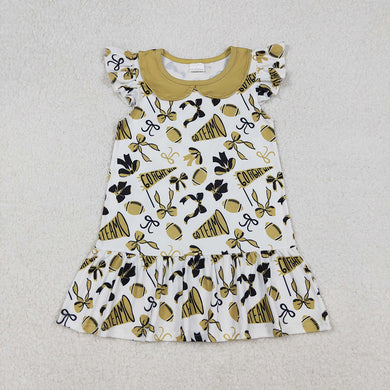 Baby Girls Flutter Sleeves Yellow Cheer Bows Team Knee Length Dresses