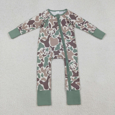 Baby Boys Brown Deer Camo Western Zipper Footie Rompers