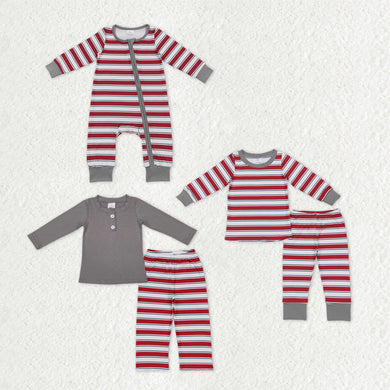 Sibling Baby Boys Girls Red Stripe Top Pants Christmas Pajamas Clothes Sets Zipper Footie Rompers