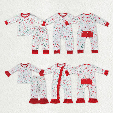Sibling Baby Kids Candy Cane Snowflake Top Pants Christmas Pajamas Sets Zipper Footie Rompers