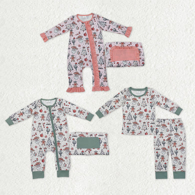 Sibling Baby Kids Hats Cows Trees Farm Merry Christmas Pajamas Sets Zipper Footie Rompers