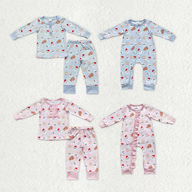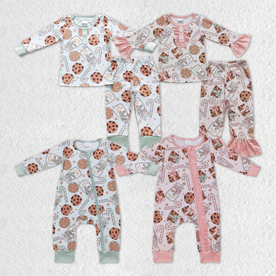 Sibling Baby Kids Cookie Milk Candy Cane Top Pants Christmas Pajamas Sets Zipper Footie Rompers