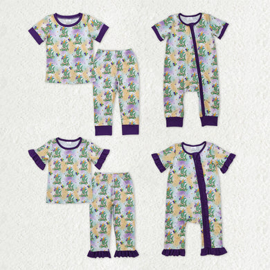 Sibling Baby Kids Anchors Crocodiles Top Pants Mardigras Pajamas Sets Zipper Footie Rompers