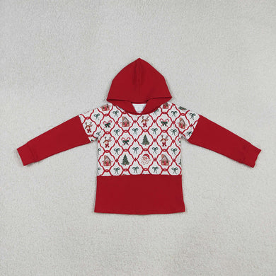 Baby Girls Red Christmas Bows Gingerbread Trees Santa Hoodies Tops