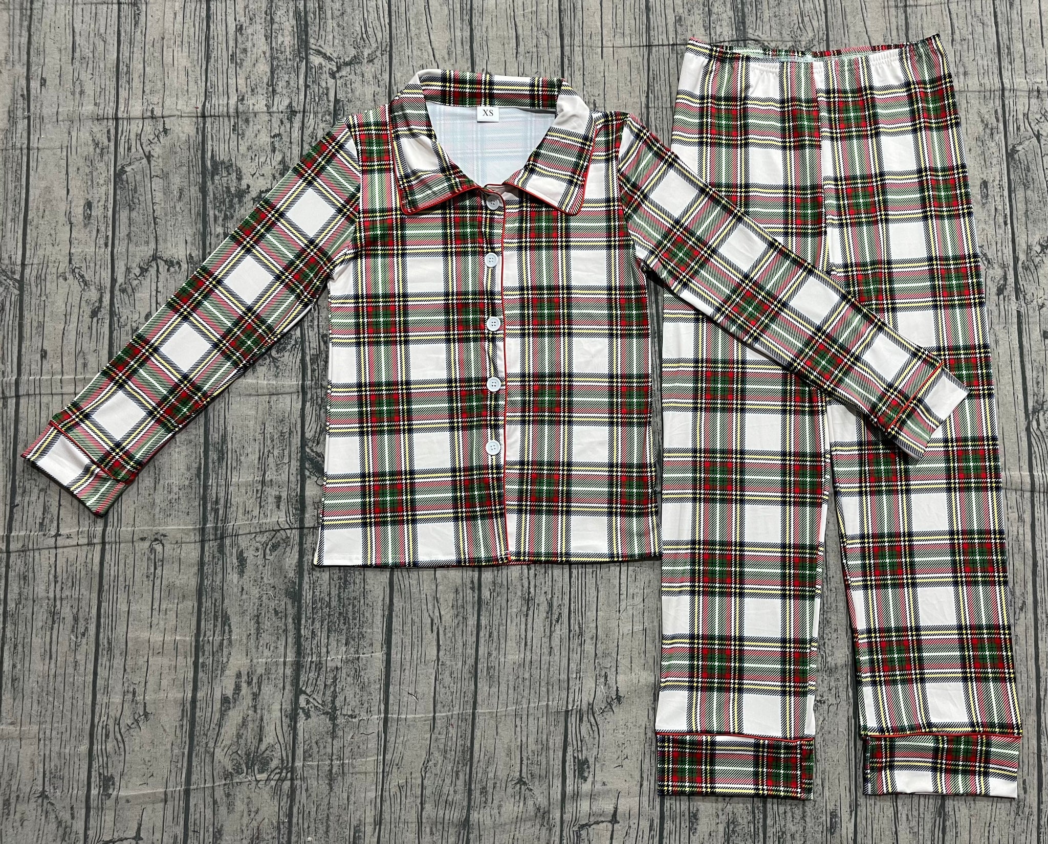 • Load image into Gallery viewer, Adult Men Green Red Checked Button Top Pant Christmas Pajamas Sets