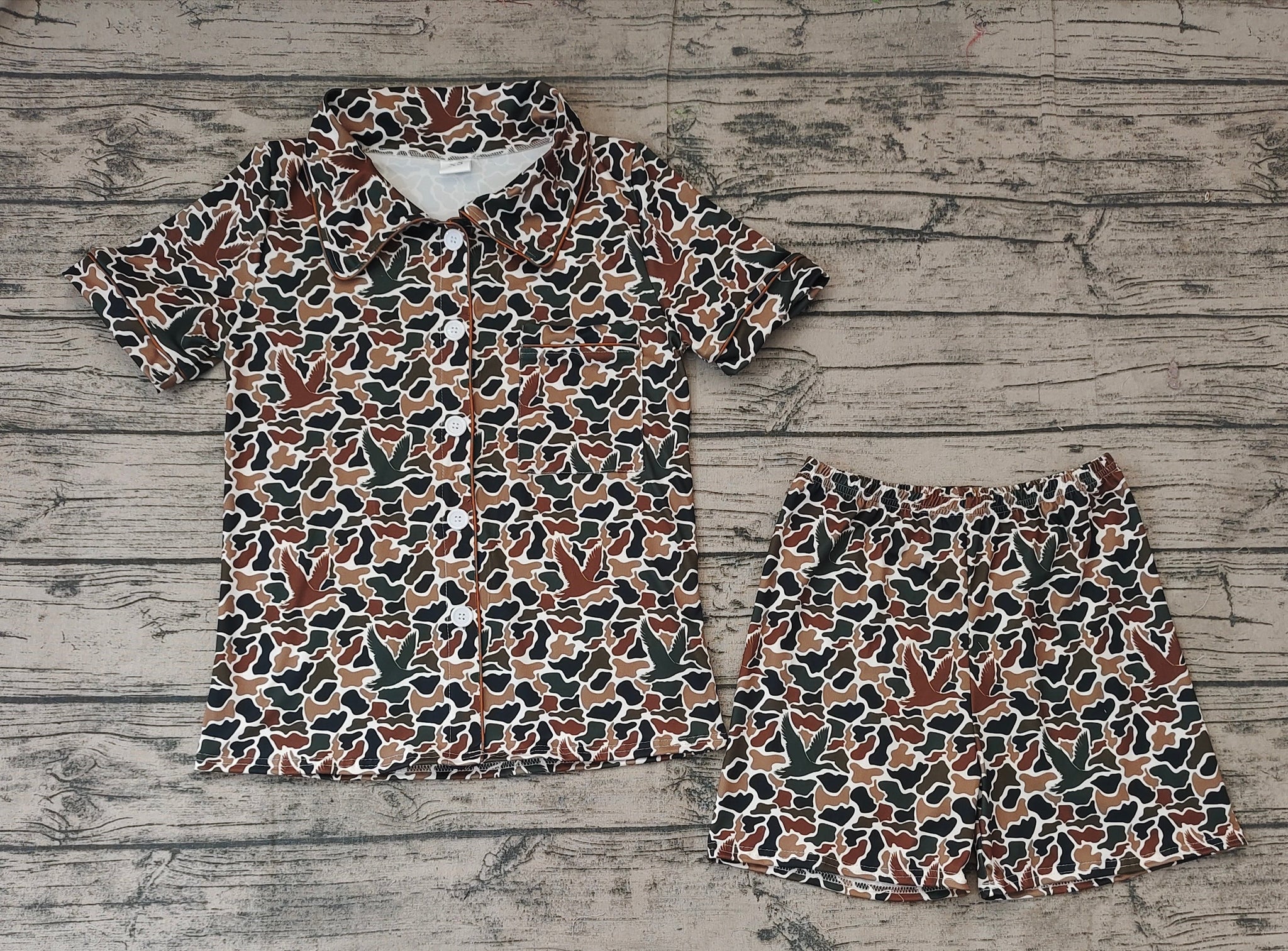 Adult Women Brown Duck Hunting Camo Buttons Tops Shorts Pajamas