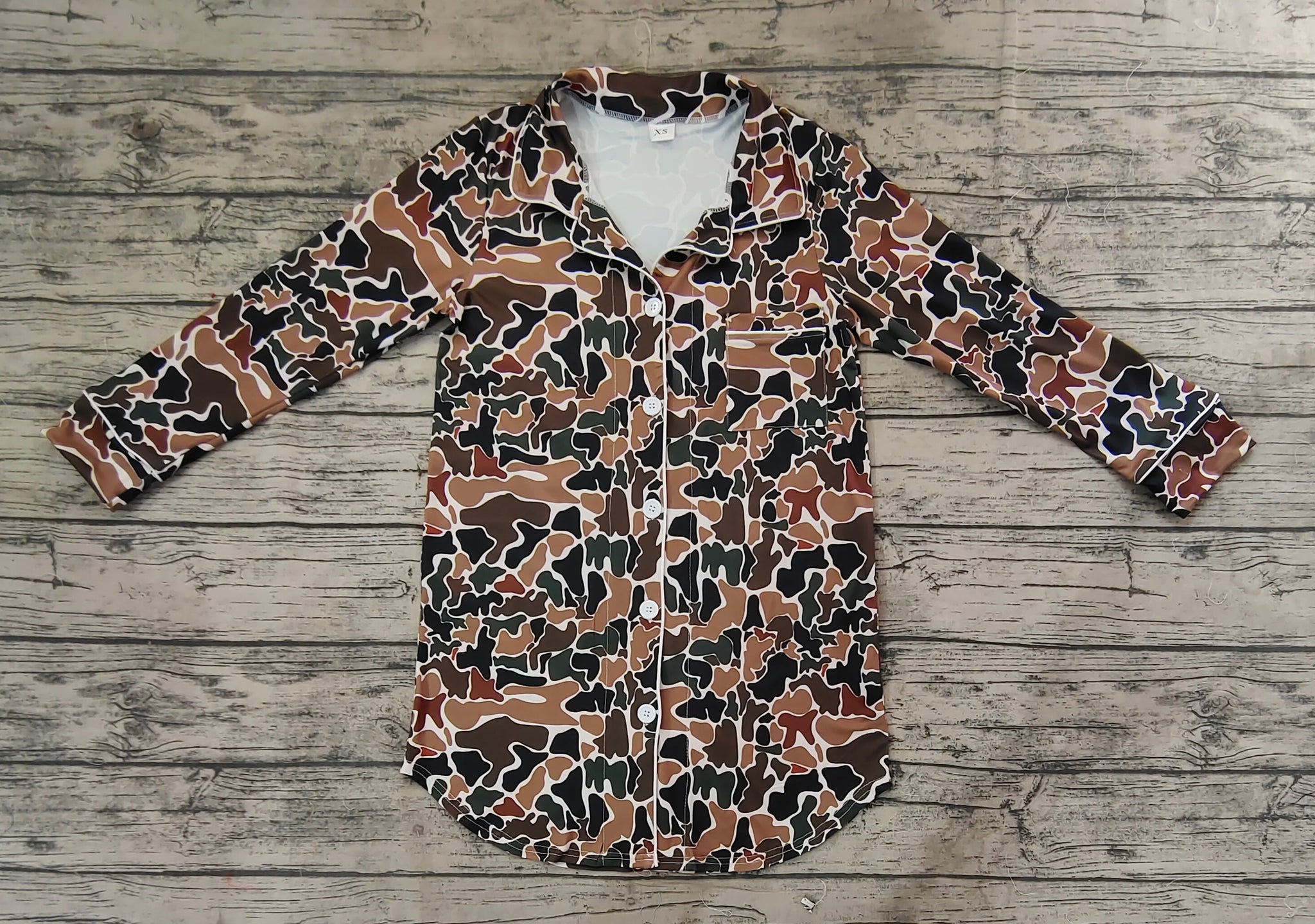 • Load image into Gallery viewer, Adult Women Camo Brown Fall Buttons Tops