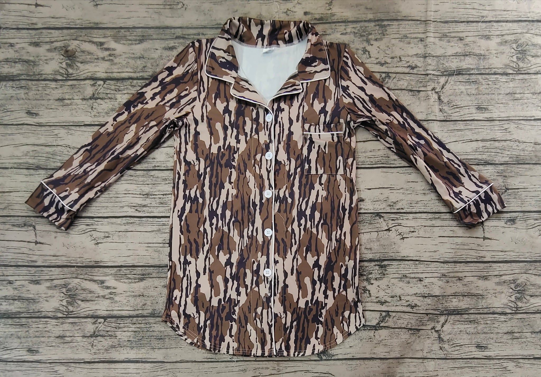 Adult Women Camo Green Fall Buttons Lounge Tops