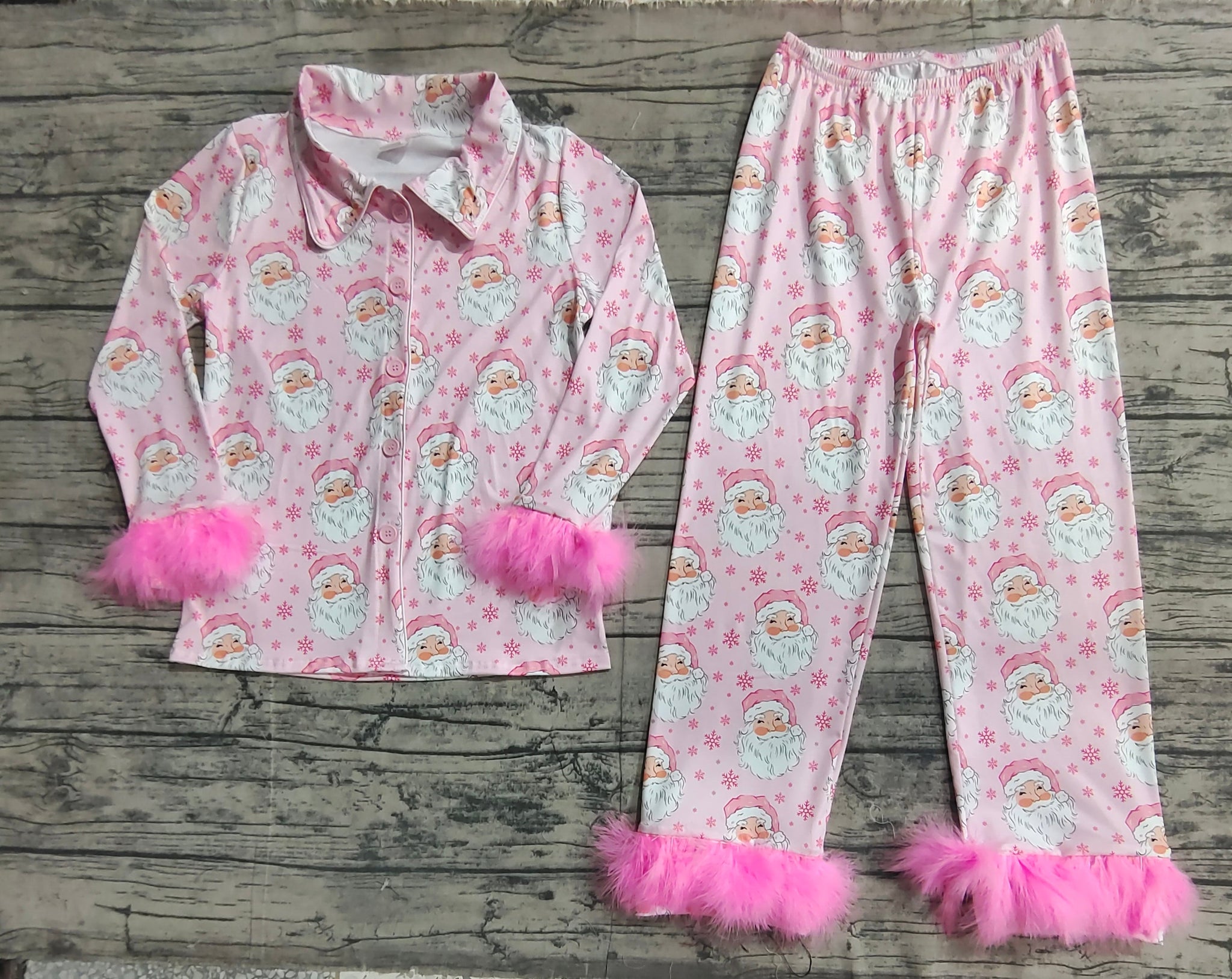 Adult Women Christmas Pink Santa Tops Pants Pajamas