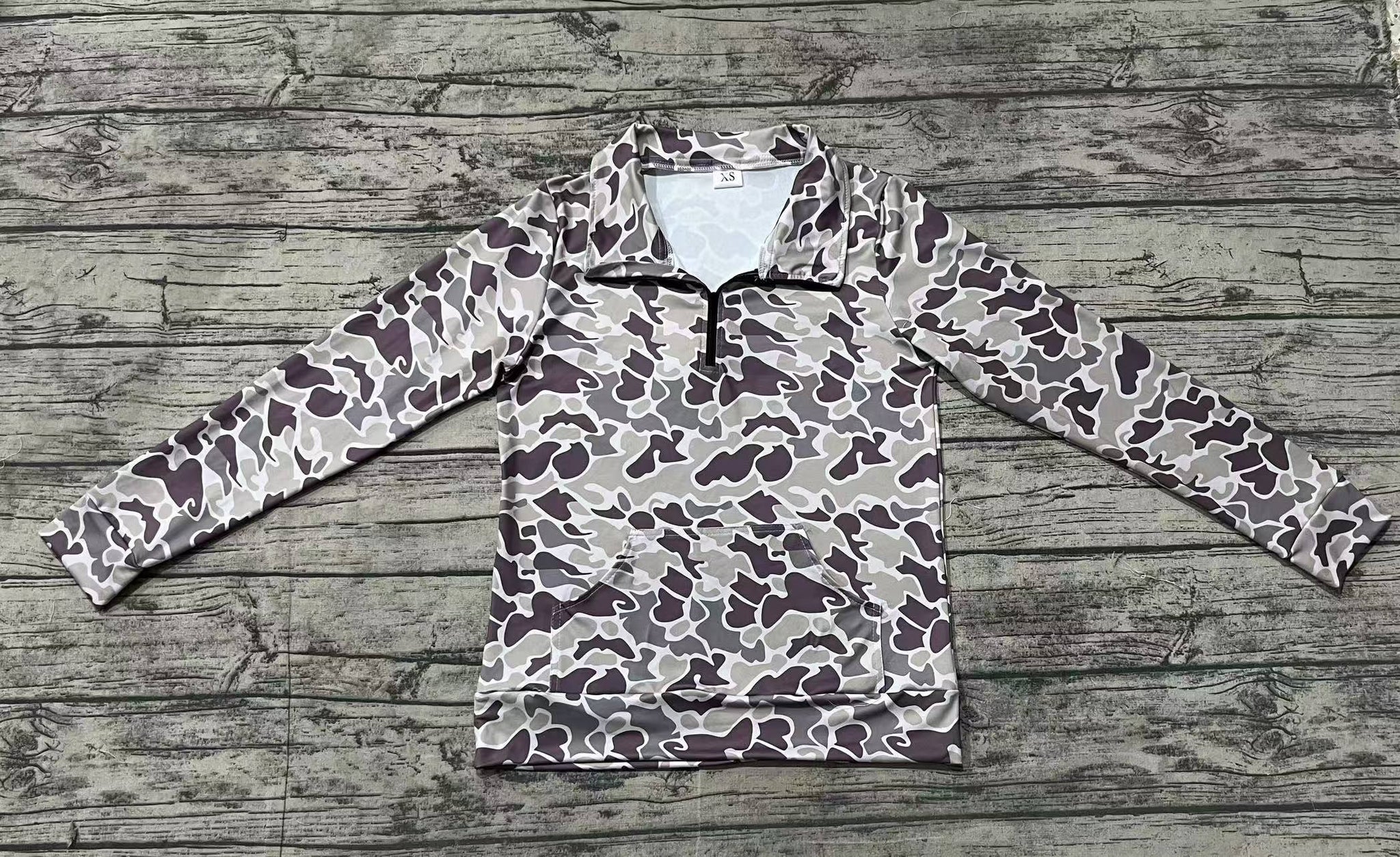 Adult Women Dark Grey Camo Long Sleeve Tee Shirts Zip Pullovers Tops