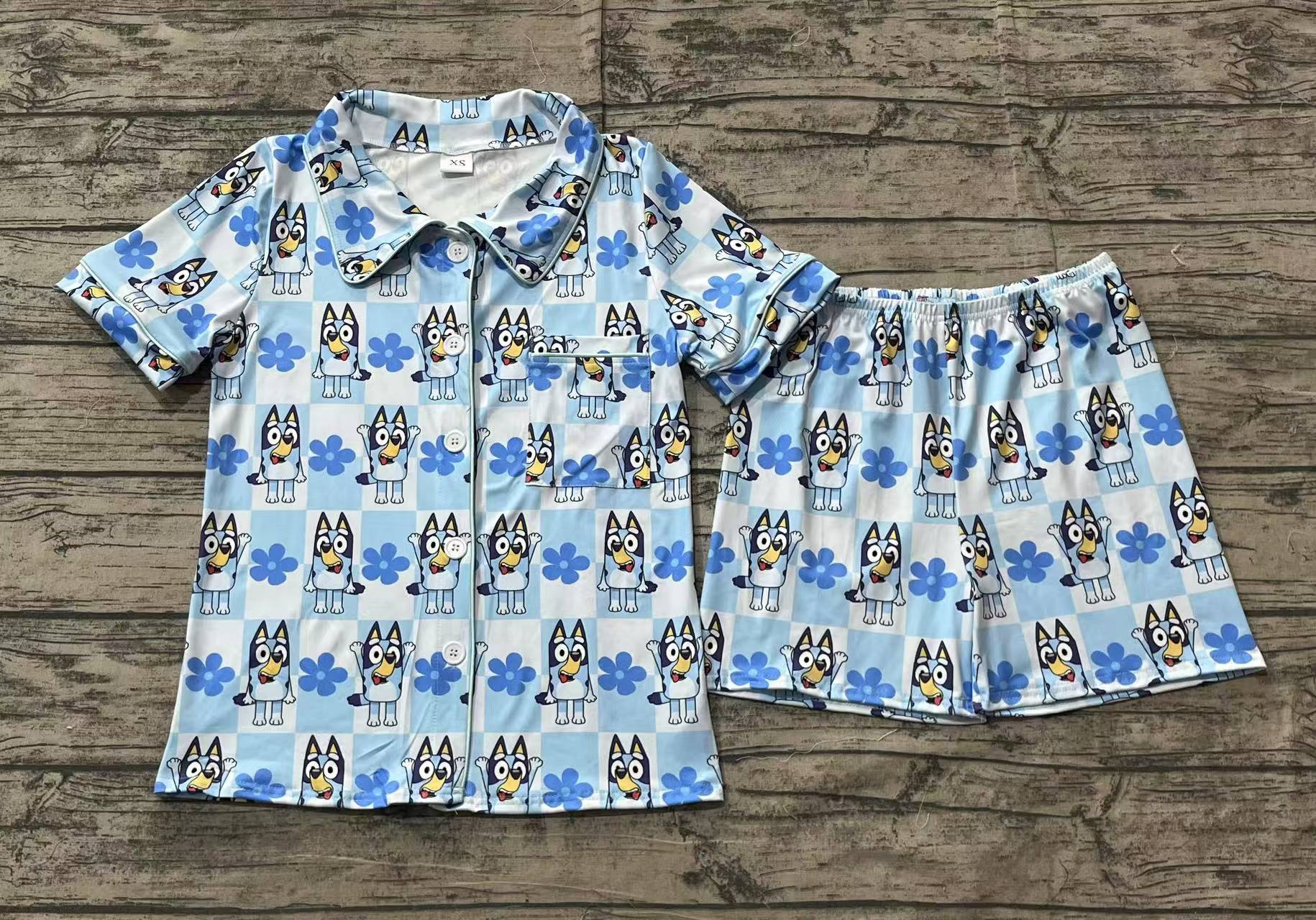 Adult Women Dogs Checkered Flowers Buttons Tops Shorts Pajamas