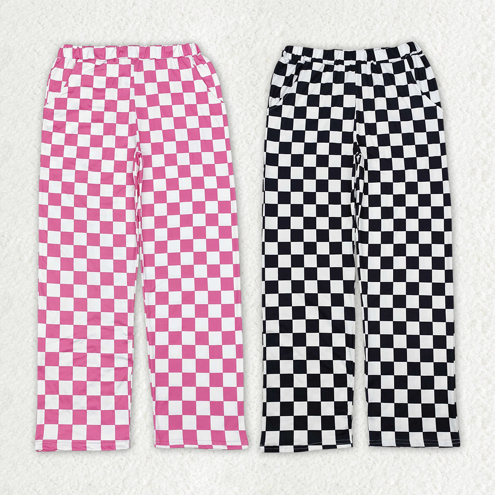 Adult Women Pink Black Checkered Two Colors Bottom Pants