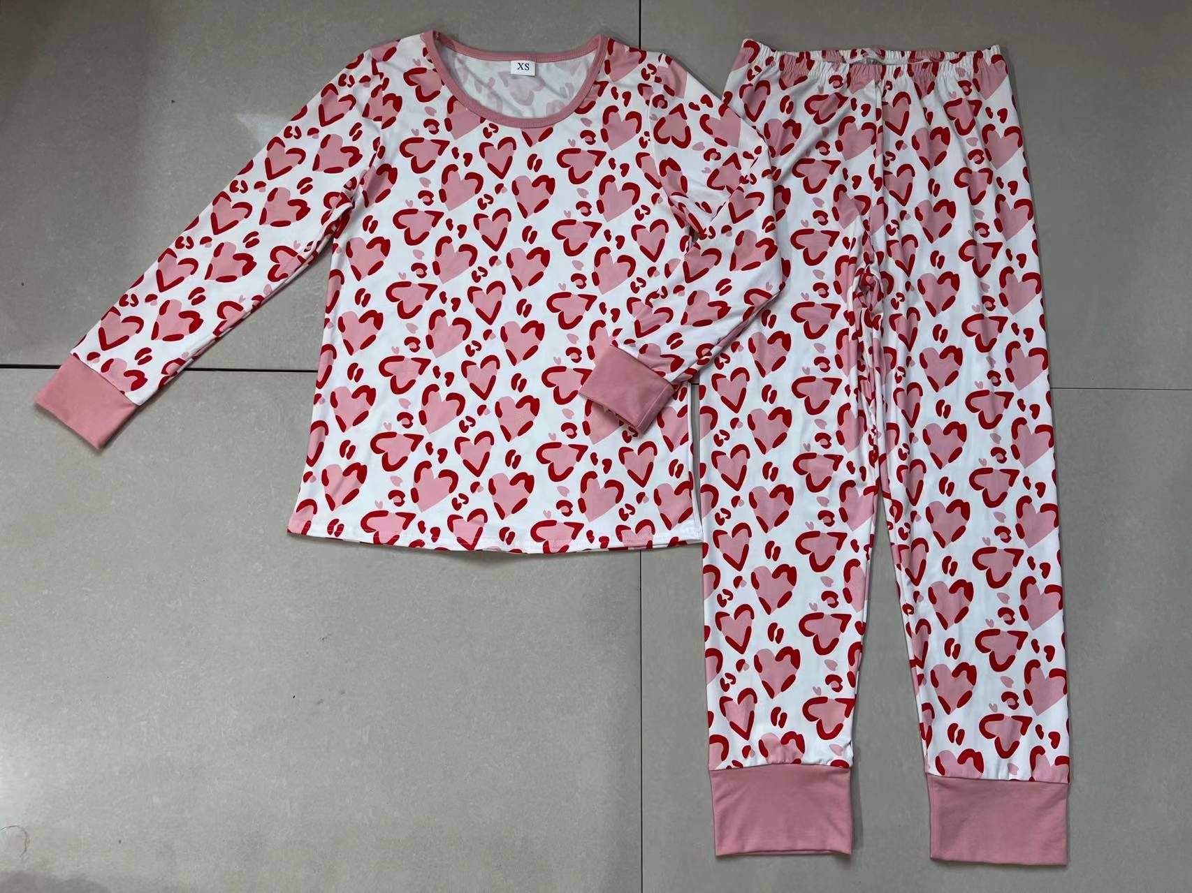 Adult Women Pink Hearts Valentines Top Pants Pajamas