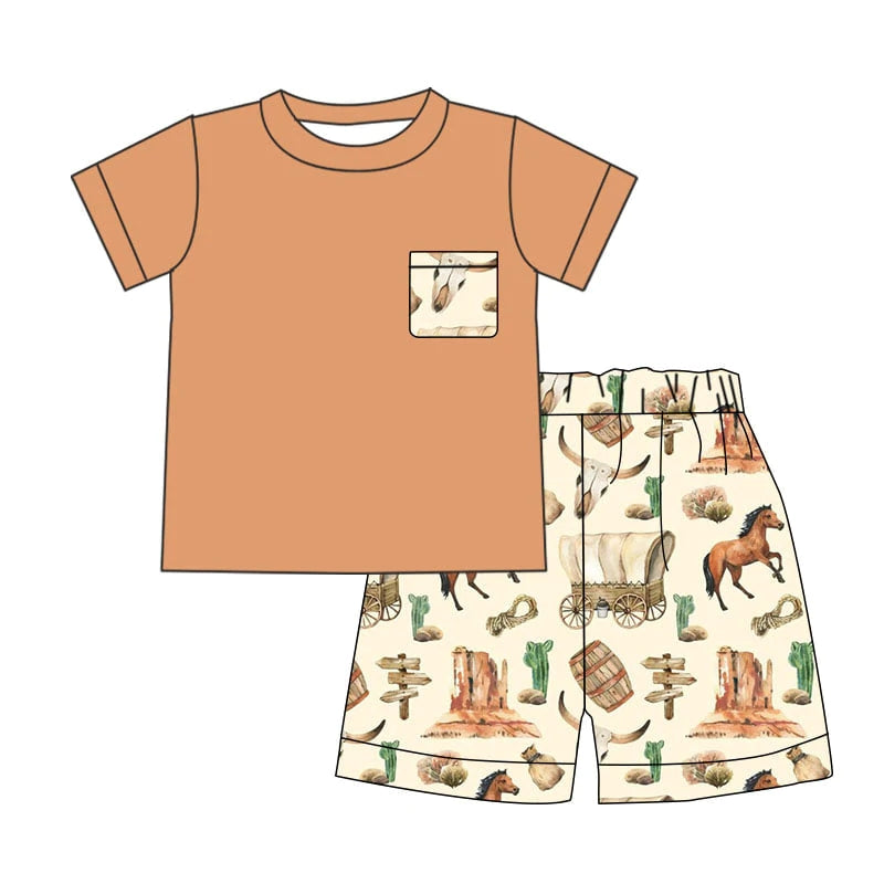 • Load image into Gallery viewer, Baby boy western pocket shorts sets