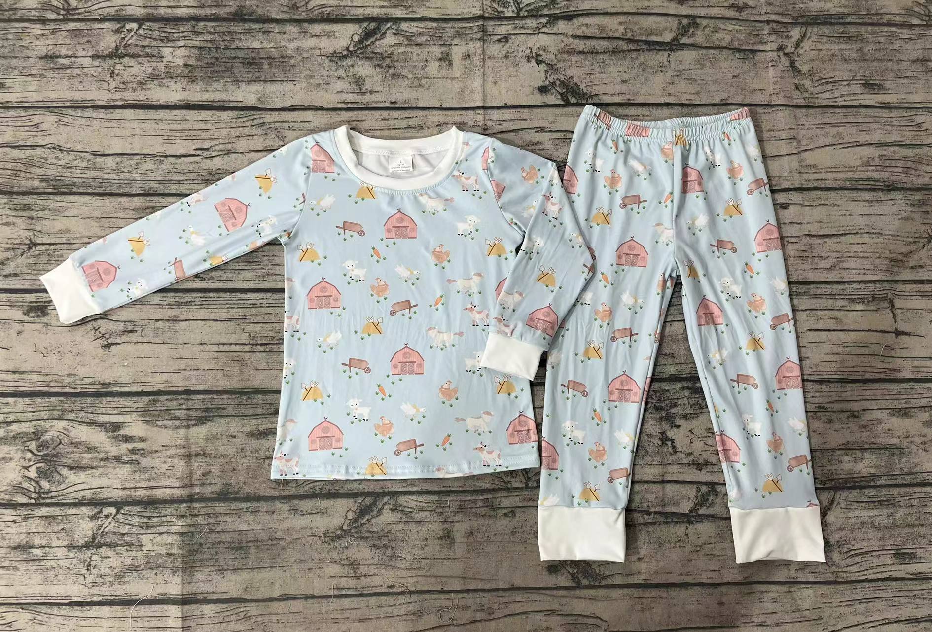 Baby Boys Animals Blue Farms Long Sleeve Shirts Pants Pajamas Clothes Sets
