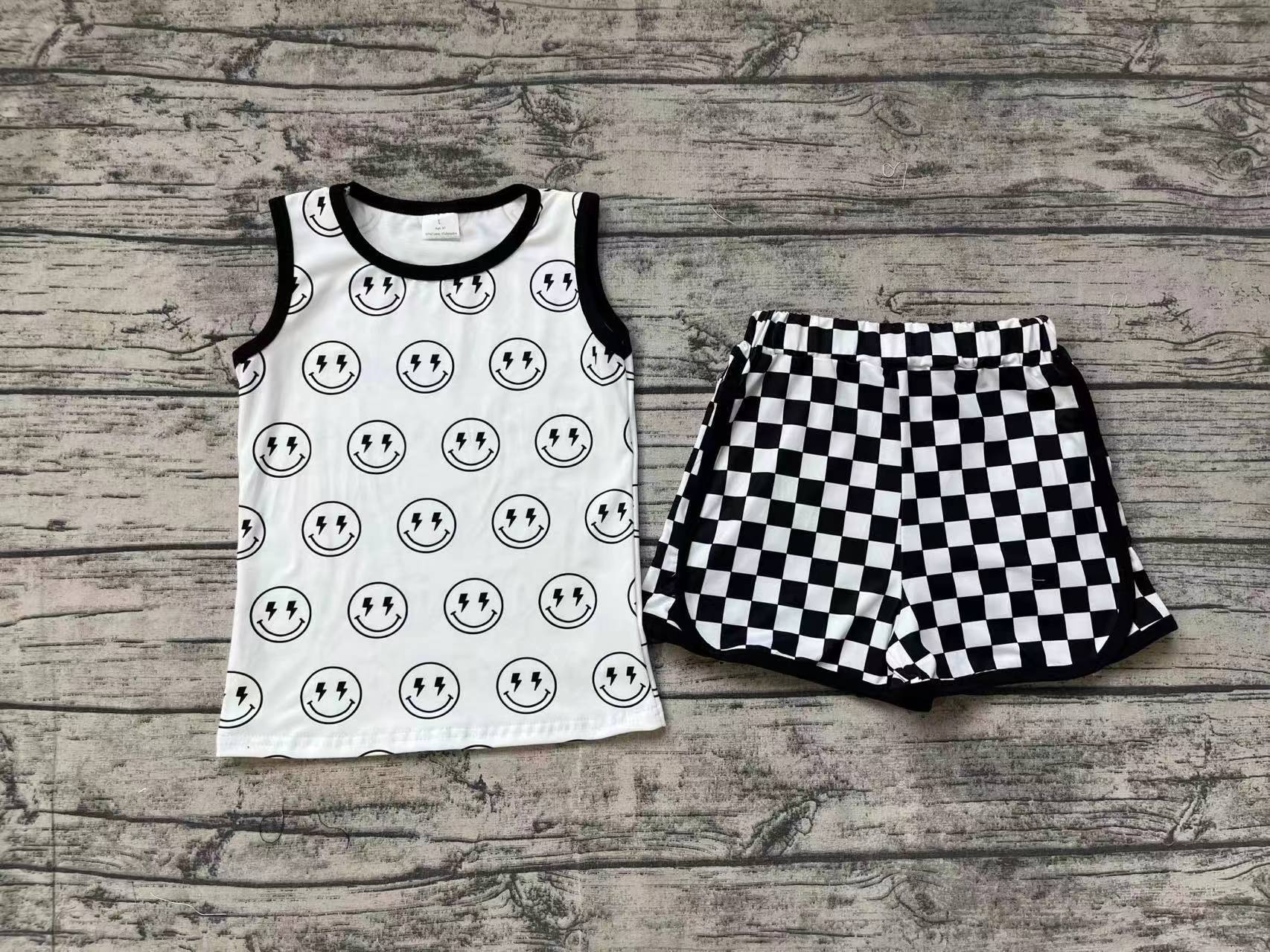 Baby Boys Black Smile Sleeveless Top Shorts Clothes Sets