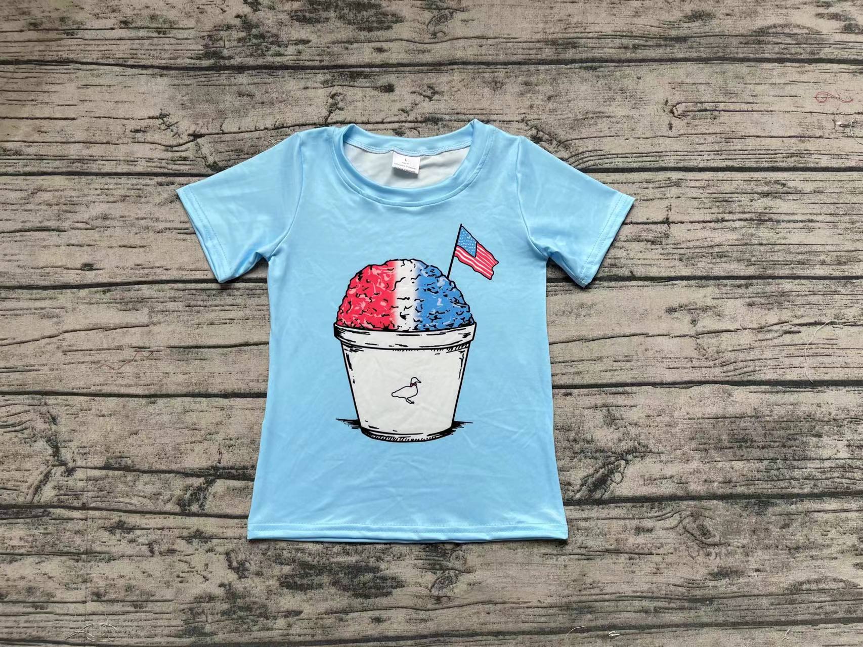 Baby Boys Blue 4th Of July Sand Flag Short Sleeve Tee Shirts Tops