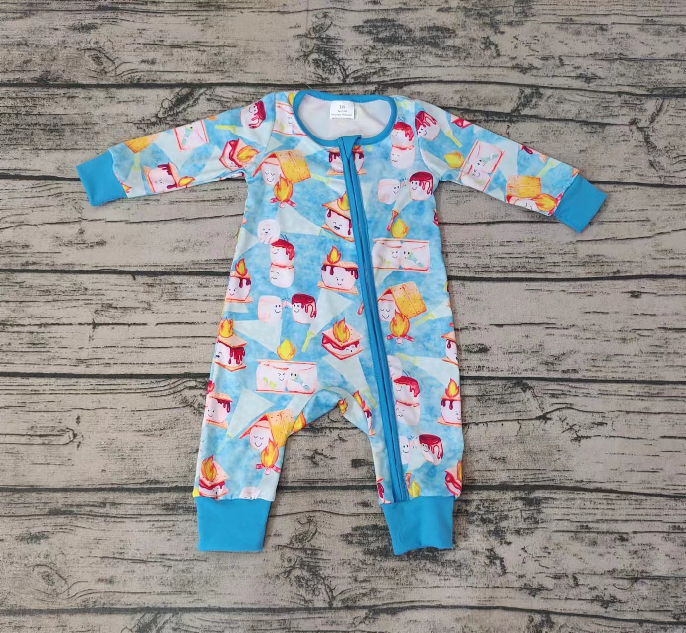 Baby Boys Blue Color Smore Cookie Fire Zip Rompers