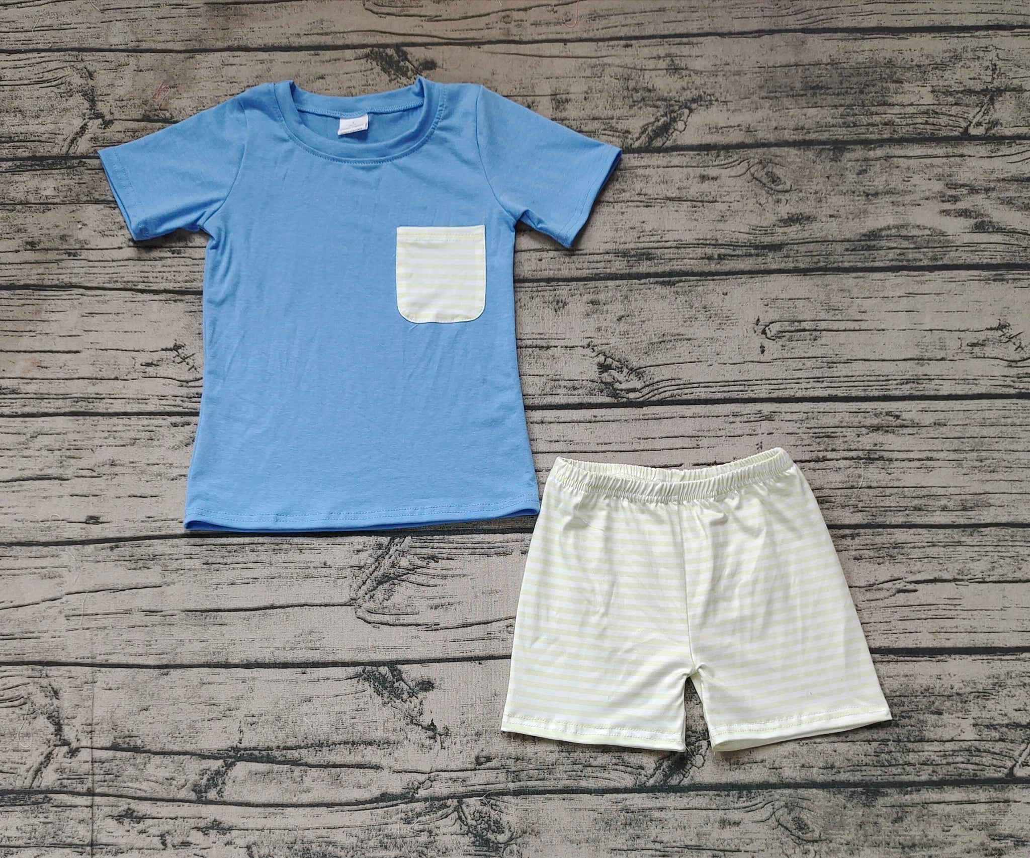 Baby Boys Blue Pocket Tops Shorts Outfits Clothes Sets